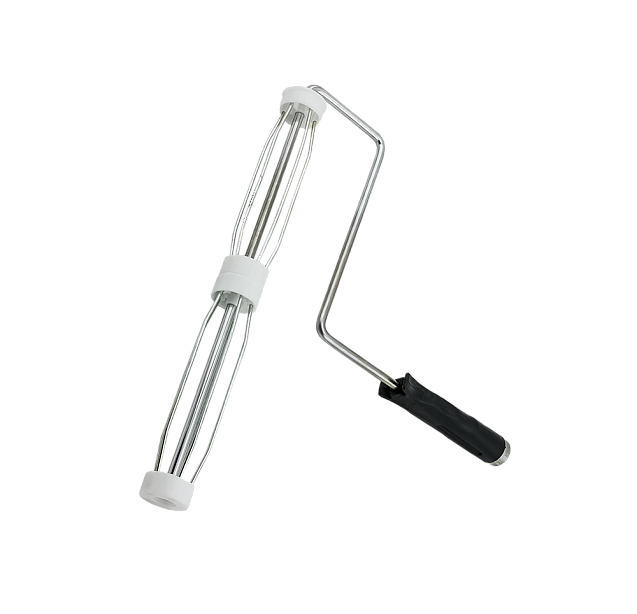 Превосходное соотношение цены и качества. Крепкий ролик с пятью спицами, и заглушками из полипропилена. Хромированный крепкий бюгель. Удобная ручка из полипропилена с внутренней резьбой для соединения с удлинителем.