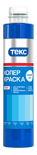 Текс профи колер краска для колеровки водно-дисперсионных красок 750 мл синего цвета может использоваться как самостоятельная краска в сухих и влажных помещениях, а также для художественных работ. Цвета могут смешиваться между собой для получения индивидуального оттенка. Для колеровки фасадных красок НЕ ПРИМЕНЯТЬ, так как в состав входят органические пигменты не стойкие к УФ.