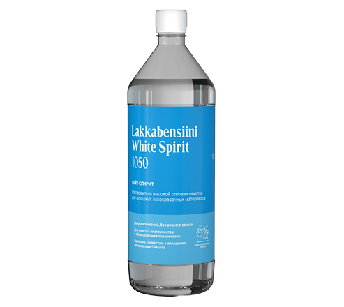 White Spirit 1050 1л высокоочищенный разбавитель, с легким запахом, не содержащий ароматов. Эффективный растворитель для алкидных, масляных красок и лаков Тиккурила, а также для обезжиривания мелких поверхностей перед окраской.