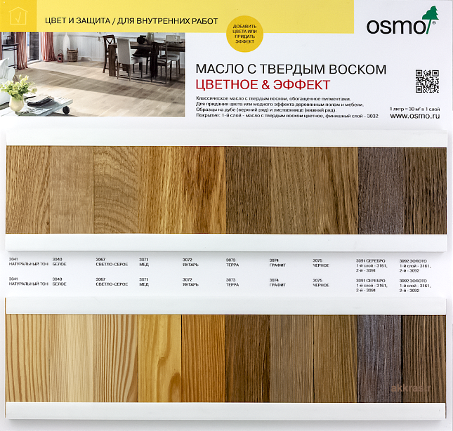 Экологически чистое немецкое масло Osmo 3071 подчеркнет красоту дерева, защитит пол и мебель от пятен, грязи и воды. Экономный расход и доступная цена пропитки повышают популярность продукта у российских потребителей. Простой и удобный в работе состав легко наносится, быстро сохнет. Высохшее покрытие безопасно для людей, животных и растений. Устойчиво к слюне и поту. Подходит для детских игрушек. Медный тон украсит и защитит деревянный пол Светлые породы древесины, используемой для обустройства пола, изготовление различных изделий и предметов мебели, требуют особого подхода. Немецкое масло Osmo Hartwachs-Ol Farbig 3071 является отличным вариантом. После обработки маслом натурального дерева создается эффект влажной поверхности. Преимущества материала Немецкие производители разработали уникальный продукт, состав которого сочетает в себе достоинства натурального твердого воска и масла. Купить Osmo Hartwachs-Ol Farbig 3071 рекомендуется при выполнении внутренних работ. С его помощью мебель и пол приобретают эксклюзивный вид, а природный рисунок и фактура волокон древесины становятся более заметными. После пропитки образуется надежная и долговечная защита от грязи и влаги, возрастает устойчивость к механическому воздействию, истиранию, пятнам от пролитой жидкости. Обработанная поверхность приобретает приятные тактильные свойства. Прозрачная структура масла с твердым воском позволяет сохранить естественную красоту пород древесины светлых тонов. После пропитки исходный цвет не меняется, изделие отличается шелковисто-матовым блеском. Пропитанное маслом изделие нейтрально к воздействию слюны и пота, допускается обработка детских игрушек. Поры древесины остаются открытыми, что исключает риск возникновения конденсата, образования плесени, грибкового налета. Расход продукта зависит от состояния поверхности, варианта окрашивания и породы древесины. При нанесении в один слой одного литра состава хватает для обработки 30 м², при двойной пропитке аналогичным объемом можно окрасить до 18 м². Для тонировки состав наносится в один слой вдоль волокон. Цена Osmo Hartwachs-Ol Farbig 3071 зависит от объема тары, производитель фасует продукт в банки 0.125 л, 0.75 л, 2.5 л, 25 л. Наносить состав рекомендуется в хорошо вентилируемом помещении, при температуре +23°С и влажности воздуха не выше 50%. Обработка поверхности составом проводится с помощью валика, шпателя или кисти. В течение суток проходит полное высыхание одного слоя. Отполировать высохший слой можно с помощью пада или тонкой шлифовальной бумаги. Устранить дефекты, и исправить ошибки при нанесении масла можно в течение получаса. Во влажном и холодном помещении период высыхания может увеличиться.