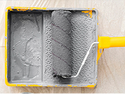 Для подготовки валика к покраске стен в ванночку необходимо налить немного краски, опустить в неё валик и прокатать его по ребристому дну поддона, благодаря чему краска равномерно распределиться на валике.