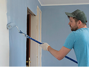 При покраске стен для обозначения границ окрашиваемой территории используют малярную ленту, которая позволяет получить ровную линию покраски и не опасаться закрасить лишнее. Однако, даже применяя малярную ленту, красить нужно не спеша и аккуратно. Особое внимание при покраске уделяется дверным и оконным коробкам, а также потолочным поверхностям, которые прилегают к стенам. Для обработки участков, недоступных валику, используют кисть или мини валик. Обычно с их помощью окрашивают 10-20 сантиметровые участки от каждого из углов помещения и другие границы, обозначенные малярной лентой. Слой краски должен быть ровным и тонким.