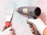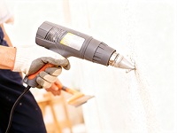 При термическом способе удаления краски будьте осторожны с раскаленными нагревательными приборами. Обратите внимание, что при нагревании краски также выделяются токсичные вещества, а потому не забывайте проветривать помещение, используйте средства личной безопасности.